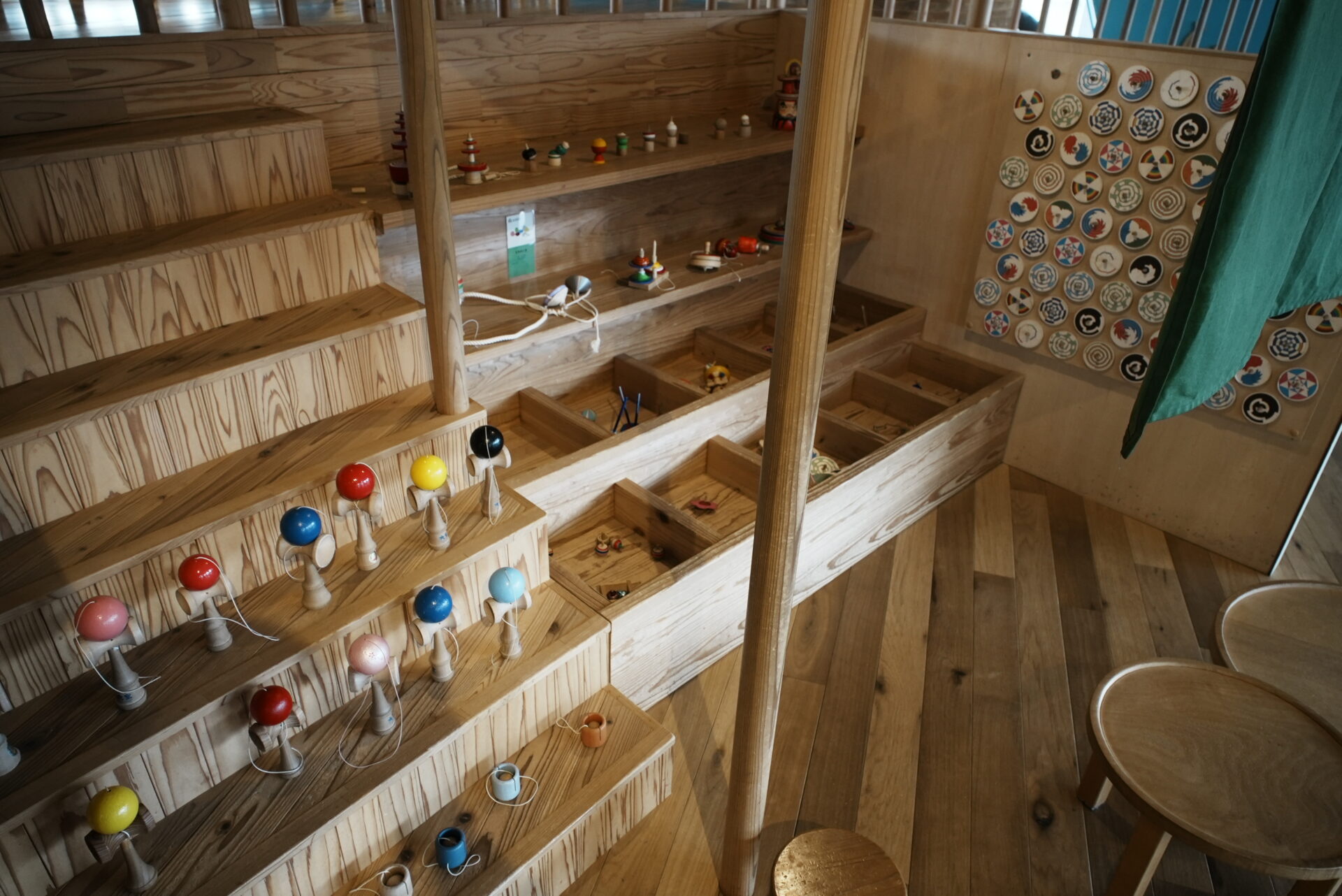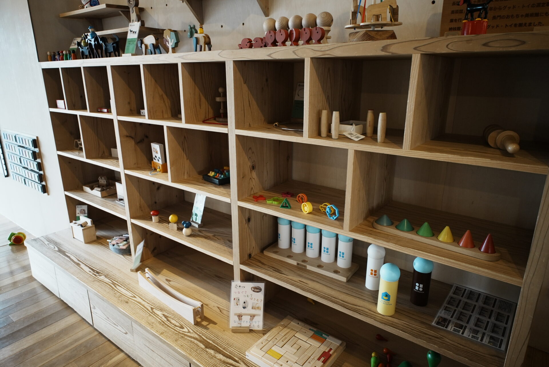 0〜2歳向けのエリアもあり、小さい子でも安心して遊べる施設でした。木のおもちゃが中心で、全体的に落ち着いた雰囲気。長門の「木」の魅力を感じられる空間です。