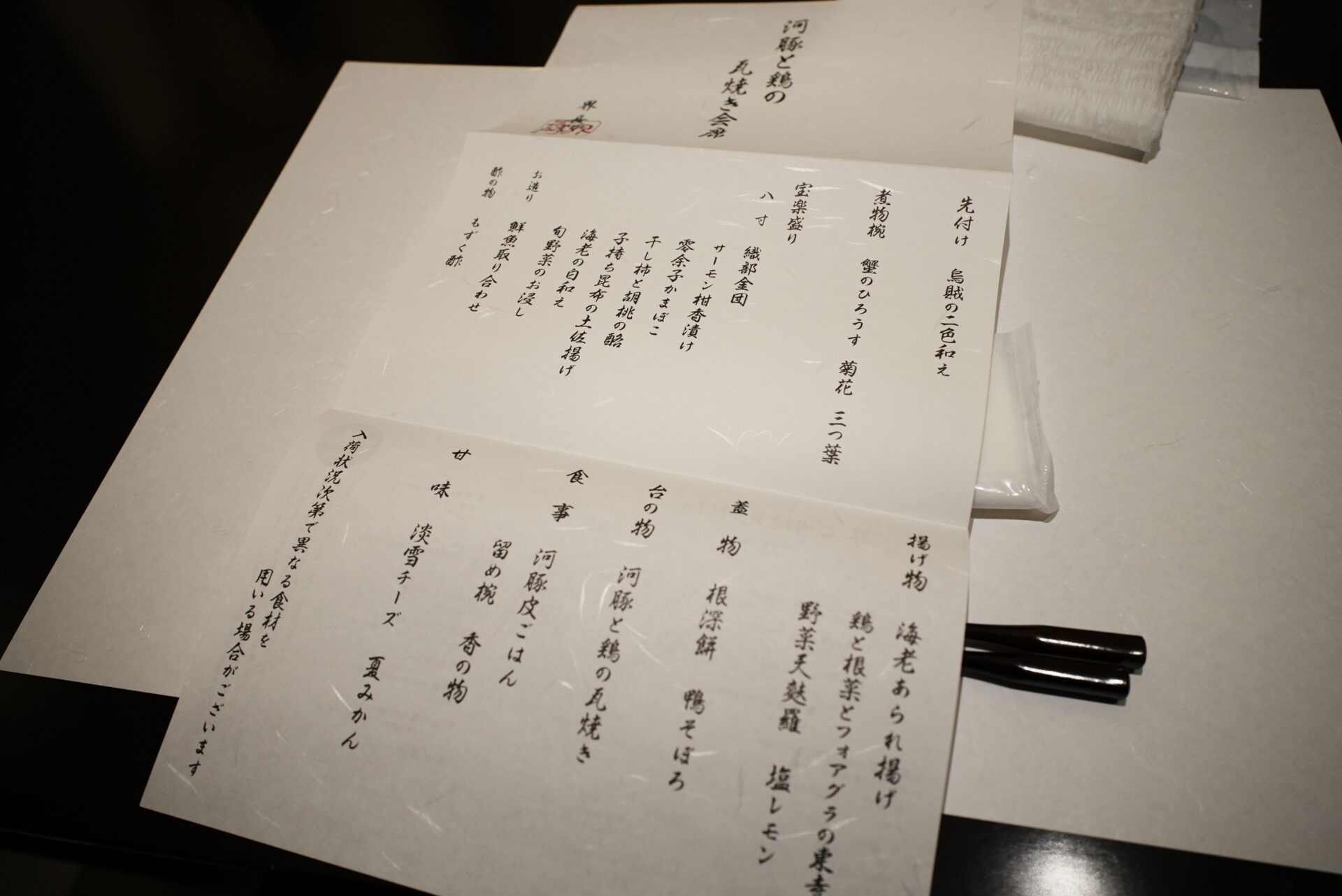 夕食は「河豚と鶏の丸焼き会席」。